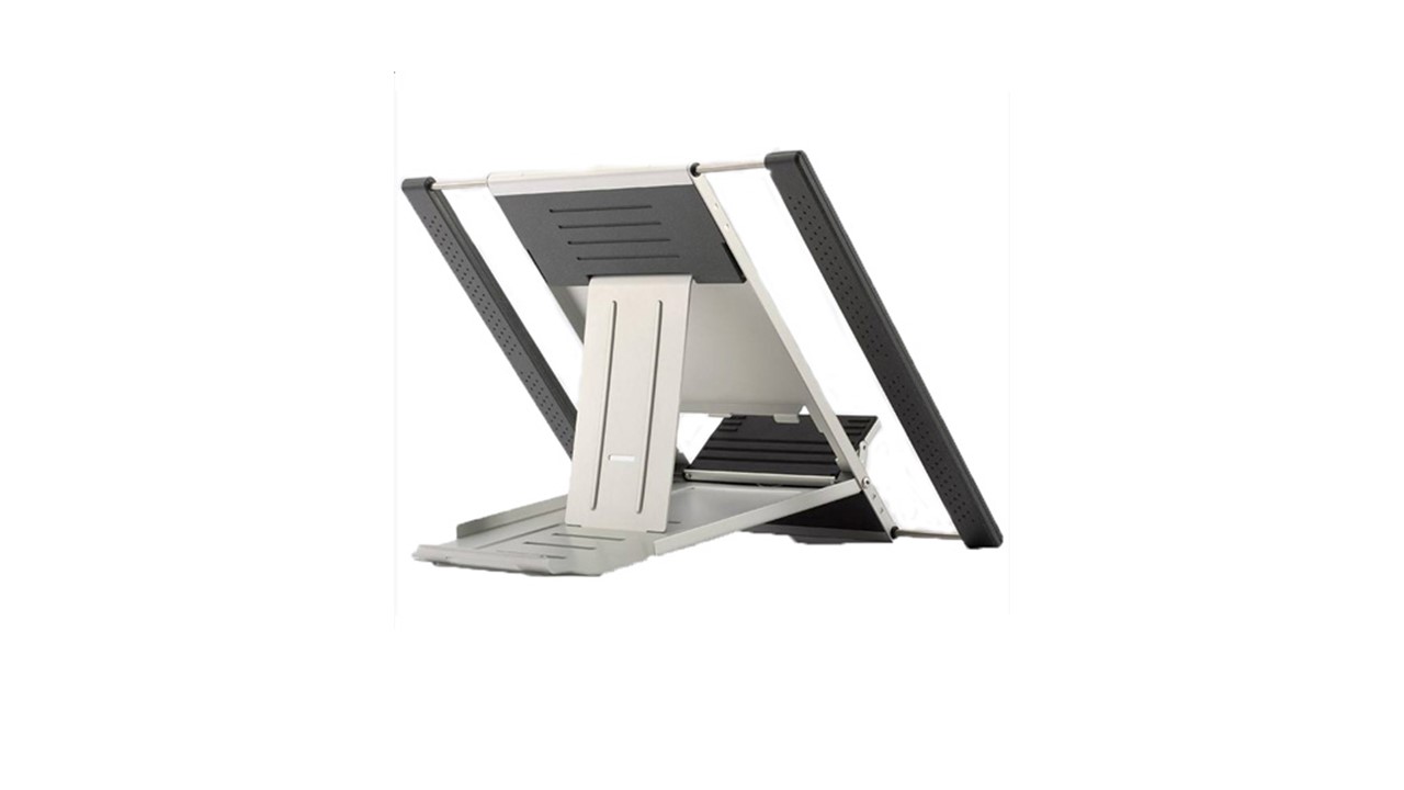 The filex-ergomove laptop, iPad and tablet stand is made of aluminum and therefore very light in weight and therefore easy to take to another workplace. The stand is compact, foldable and very stable. It is adjustable in 6 tilt positions. The support base can be broadened on both sides so that both wider laptops and tablets fit on this standard. the Filex ergomove comes in a handy cover that can also be used as a mouse pad.
